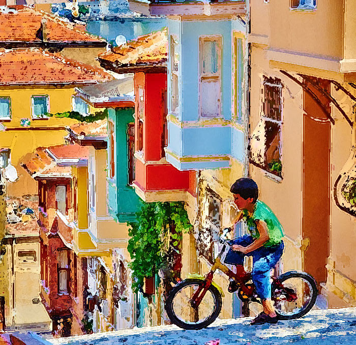 I love painting sea landscapes and colorful, vivid, optimistic pieces.